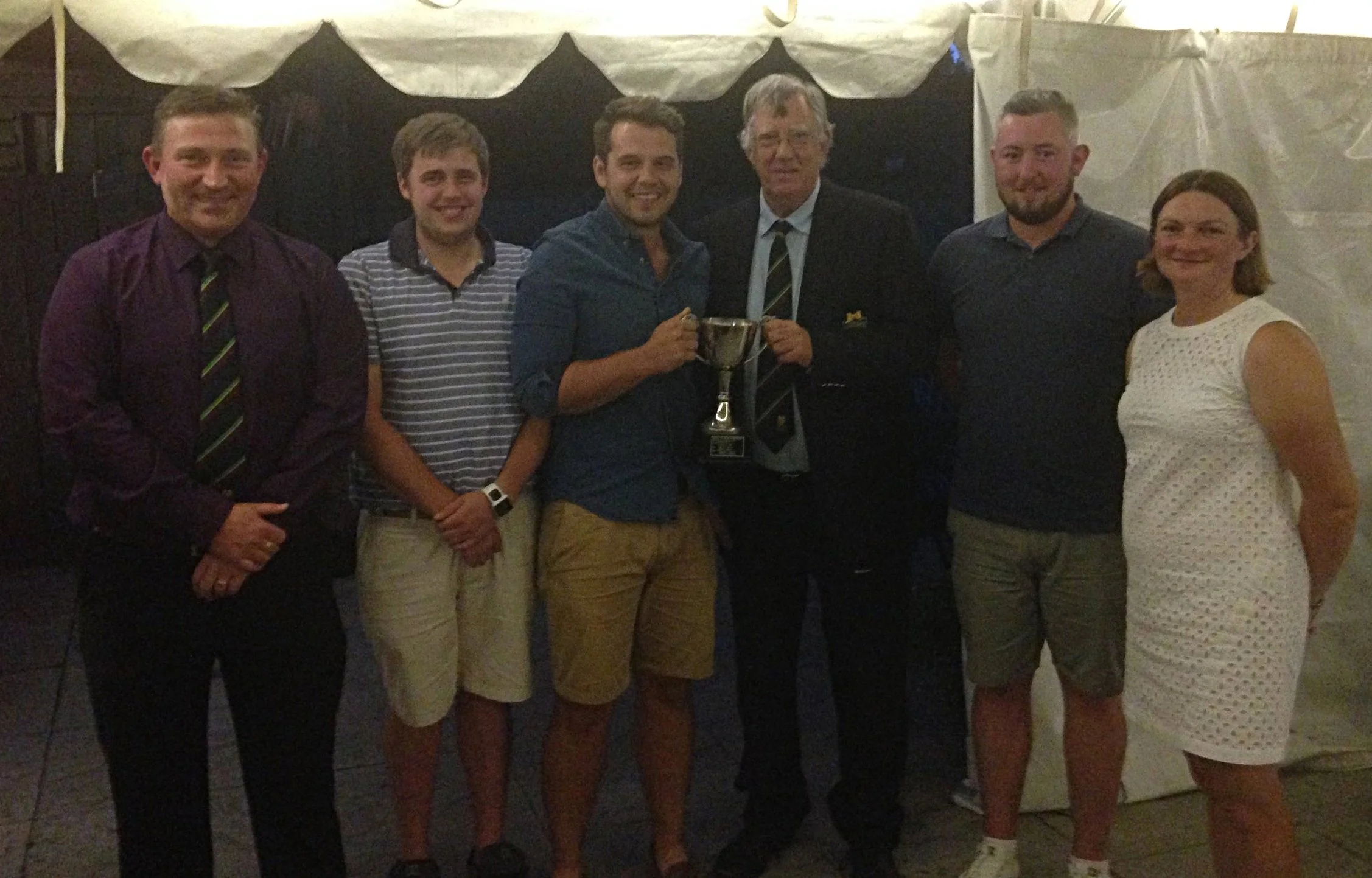 Cumberland Cup winners Tom Mills, Dan Goodwin & Tom Price (Jon Samuel unable to attend) alongside Roger Cumberland (Trophy donor), Chris Offa (Club Captain), Sherrie Edwards (Lady Captain)